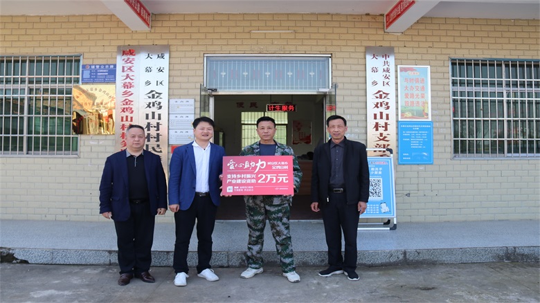 2022年3月9日上午,晴空如洗,惠風(fēng)和暢。真奧金銀花藥業(yè)的毛總以及咸安區(qū)農(nóng)業(yè)農(nóng)村局的郭局長和江局長一行來到金雞山村,開展 “愛心助力”公益活動(dòng)。金雞山村地處咸安區(qū)偏遠(yuǎn)的大幕鄉(xiāng),物產(chǎn)豐富,人杰地靈。全村有24個(gè)村民小組,共1066戶,總?cè)丝?802人。在黨的政策支持下,金雞山村因地制宜,大力發(fā)展家禽養(yǎng)殖、大棚蔬菜種植、花卉種植、糧油加工、旅游觀光等產(chǎn)業(yè),在2019年全村成功脫貧。習(xí)近平總書記多次強(qiáng)調(diào),民族要復(fù)興,鄉(xiāng)村必振興。全面實(shí)施鄉(xiāng)村振興也是國家“十四五”規(guī)劃中一個(gè)重要的戰(zhàn)略。為了響應(yīng)國家政策,助力鄉(xiāng)村振興,金銀花藥業(yè)現(xiàn)場向金雞山村捐款20000元用于支持美麗鄉(xiāng)村建設(shè)。