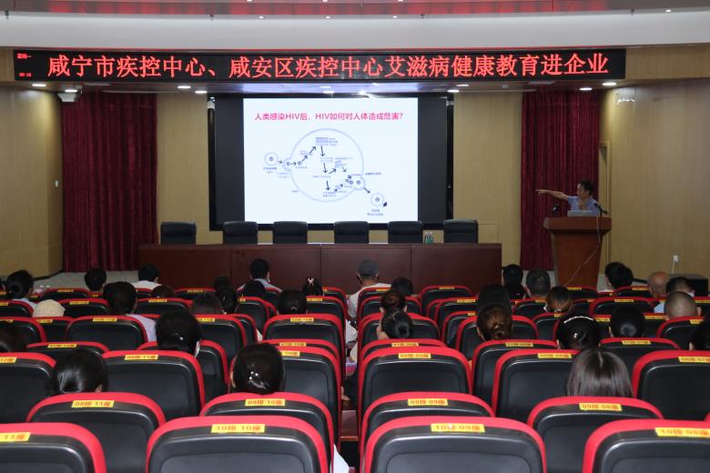 2022年7月25日咸寧市疾控中心、咸安區(qū)疾控中心在真奧藥業(yè)對(duì)員工進(jìn)行艾滋病健康教育培訓(xùn)